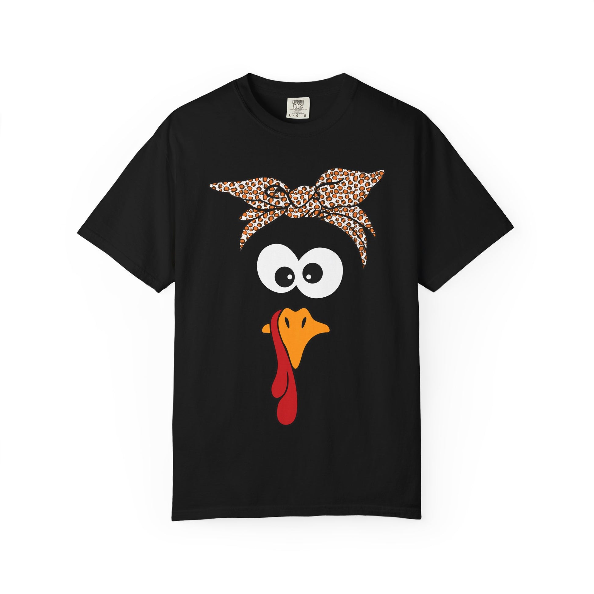 Soft, relaxed, and a little bit cheeky — this garment-dyed tee wears like your favorite weekend shirt and shows off a playful turkey face with a patterned bandana. The lightweight but substantial cotton drape invites lazy mornings and backyard gatherings. It sits loose through the body for easy layering and breathes well during long outdoor meals or cozy kitchen chaos. Wear it to bring a smile to a family cookout, a Friendsgiving prep session, or a laid-back holiday photo — the design reads lighthearted and handmade, the fabric feels lived-in from the first wear.