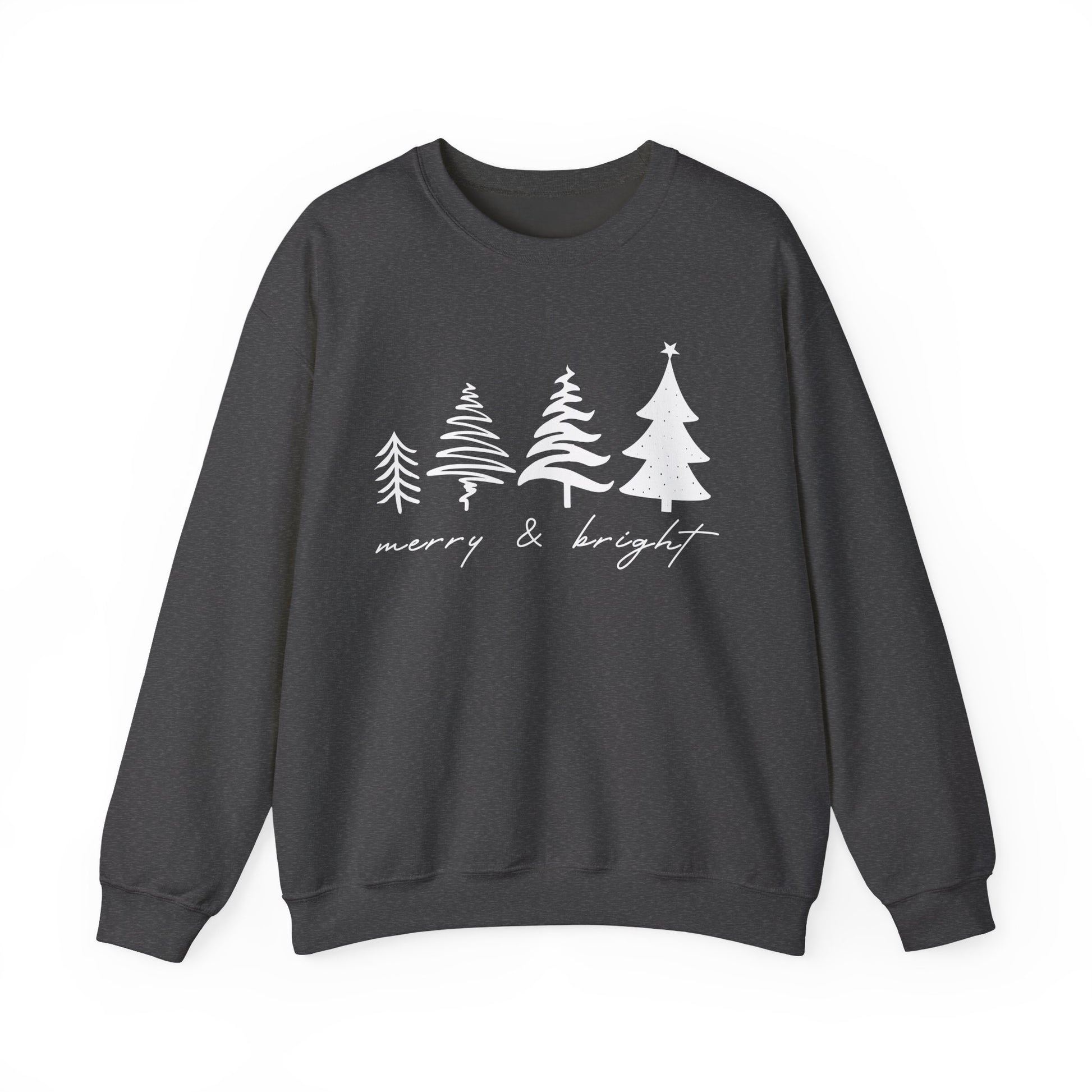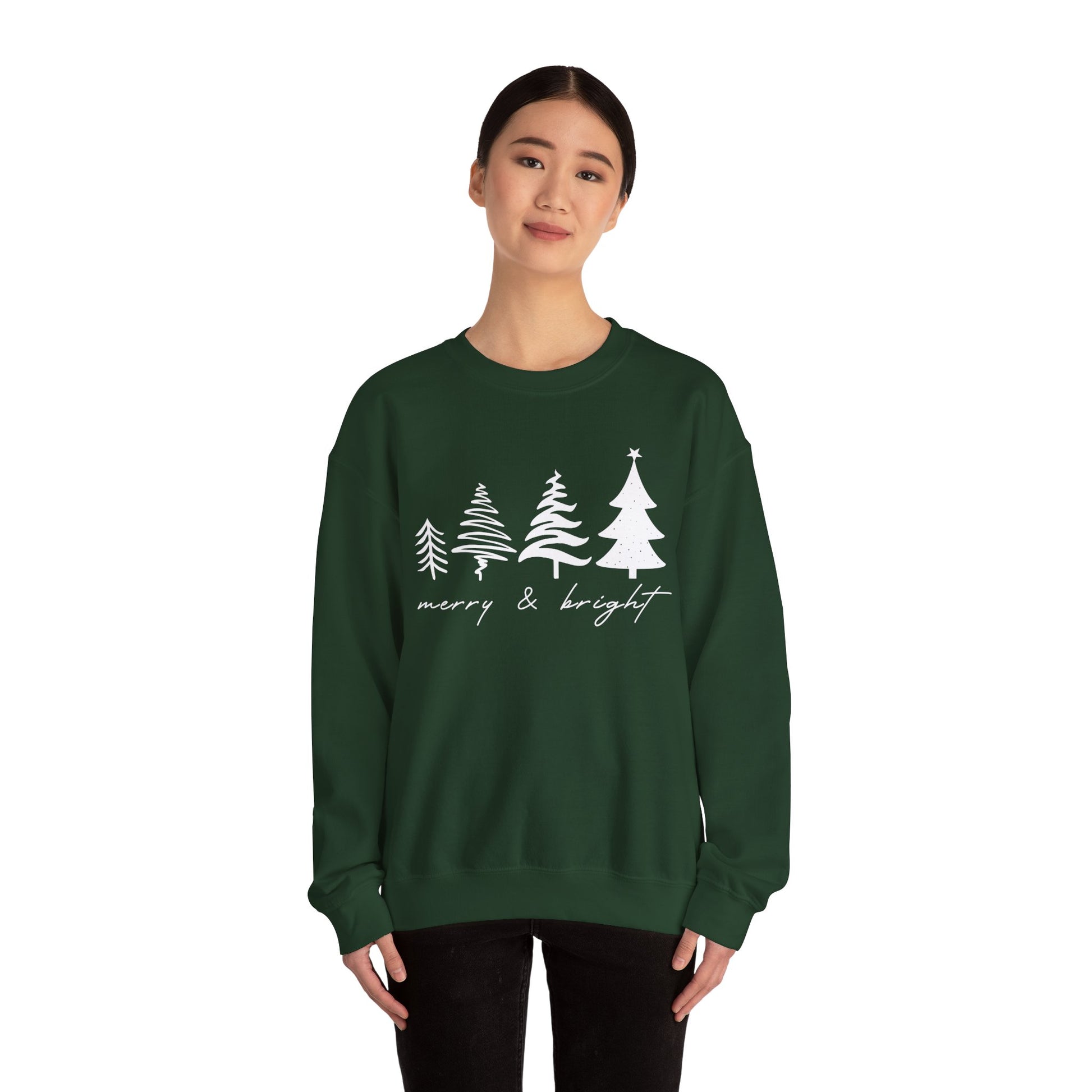 Christmas Trees Sweatshirt | Merry & Bright Holiday Outfit | Retro Merry Christmas Holiday Gift | Xmas Winter Sweatshirt