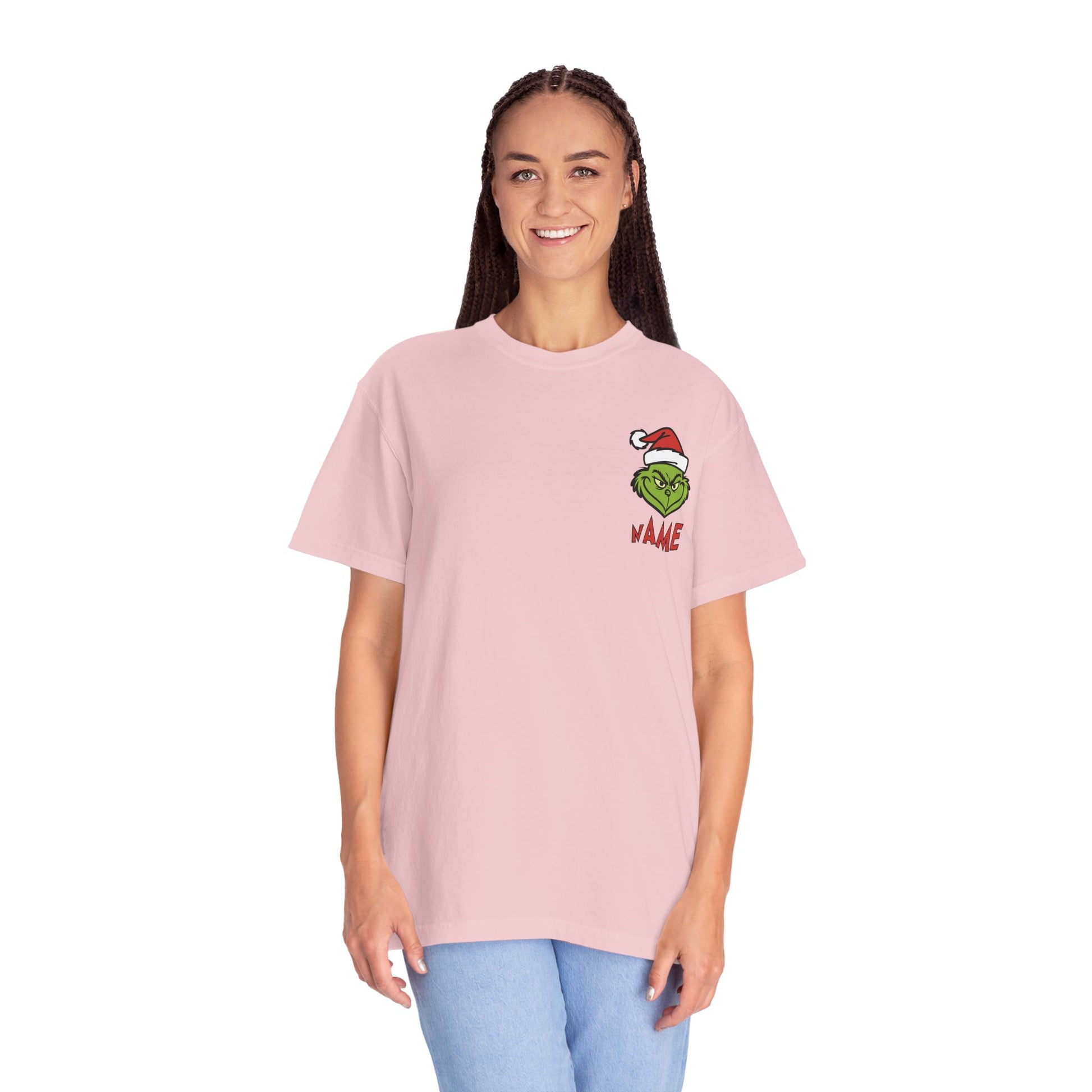 This relaxed-fit tee brings playful holiday mischief to your closet. The garment-dyed, 100% ring-spun cotton feels soft and lived-in from the first wear — like a favorite shirt already. A cheeky Grinch face with a Santa hat sits small over the chest and repeats larger across the back with bold, hand-lettered “merry GRINCHmas” art. It’s an easy layer for brisk morning walks, chaotic gift-wrapping sessions, or low-key family gatherings where humor and comfort win out. The tubular knit and double-needle stitching mean this shirt will hold its shape through washes and wear, while the medium weight keeps it versatile across seasons. Choose a color that matches your vibe and let the tee do the smiling (or scowling) for you.