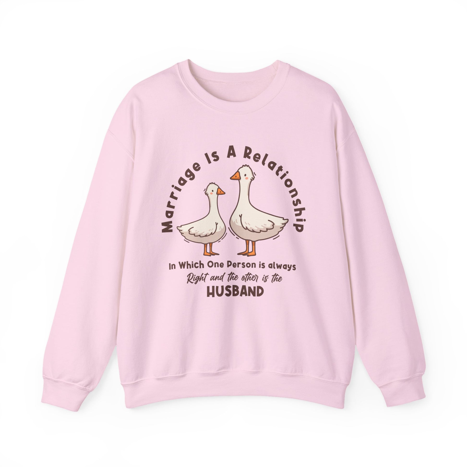Funny Marriage Sweatshirt | Wife sweatshirt gift | Gift for Husband | Goose Couple | Marriage is a RELATIONSHIP in which one person always