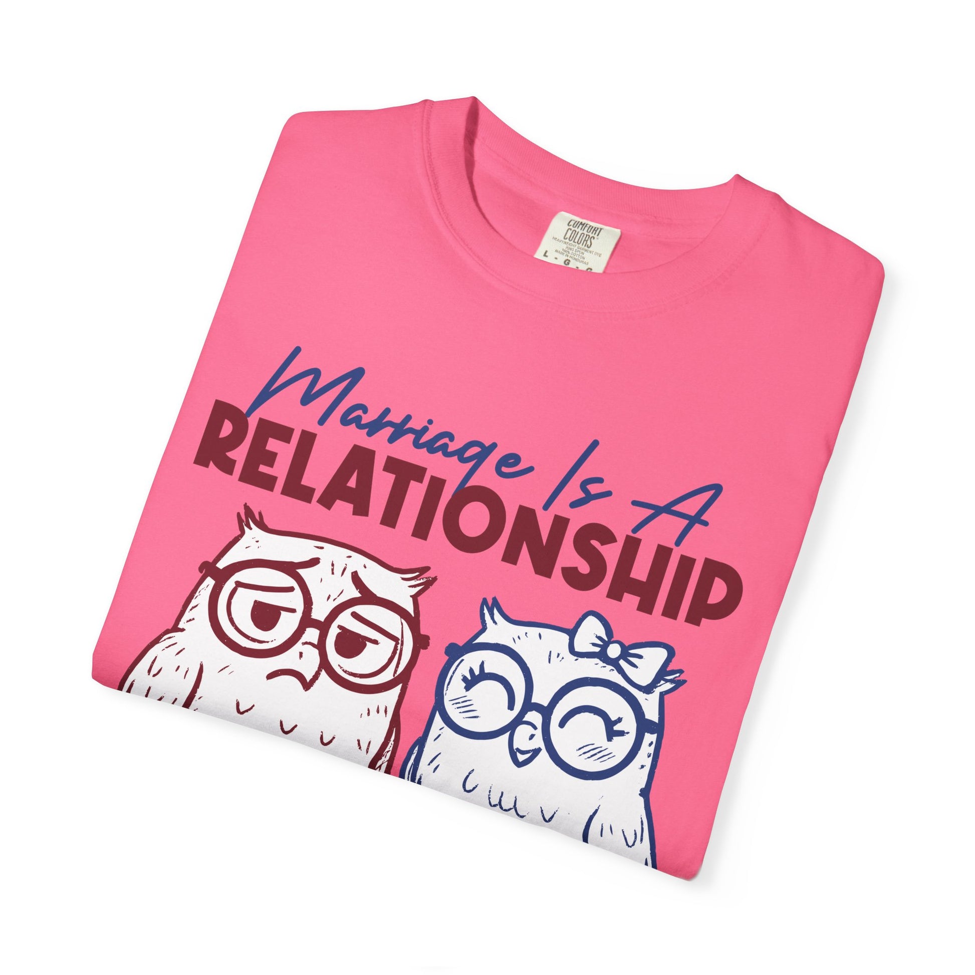 Funny Marriage T-shirt | Wife tees gift | Gift for Husband | Owl Couple | Marriage is a RELATIONSHIP in which one person always