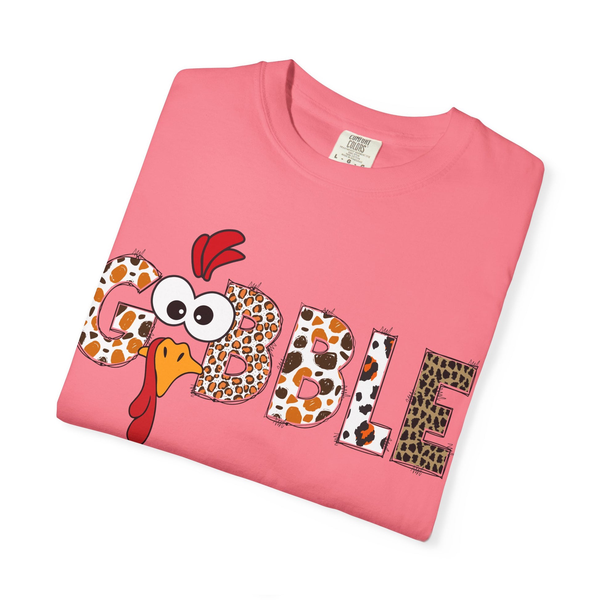 Gobble Turkey Graphic T-shirt | Thanksgiving Turkey Shirt, Leopard Print Letters