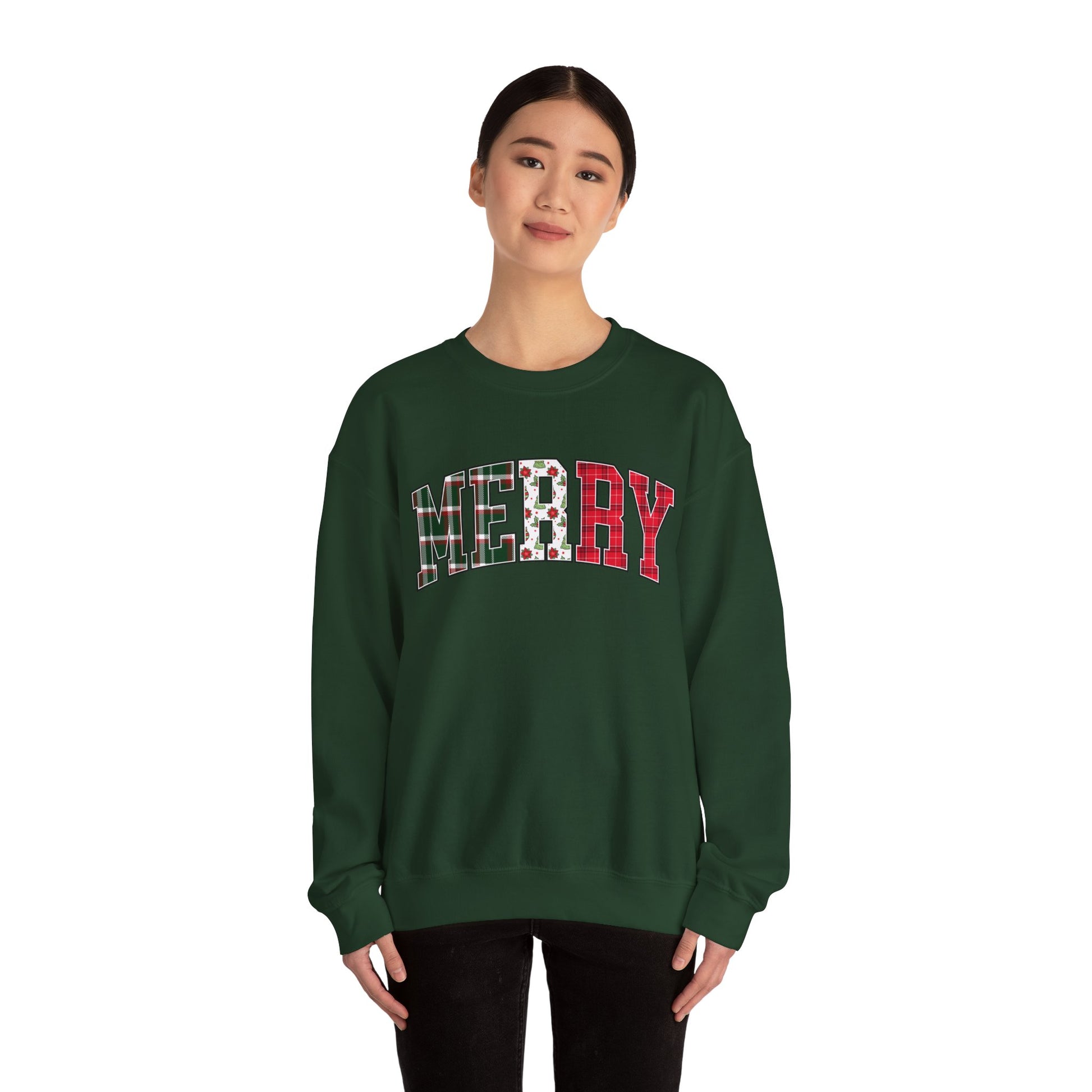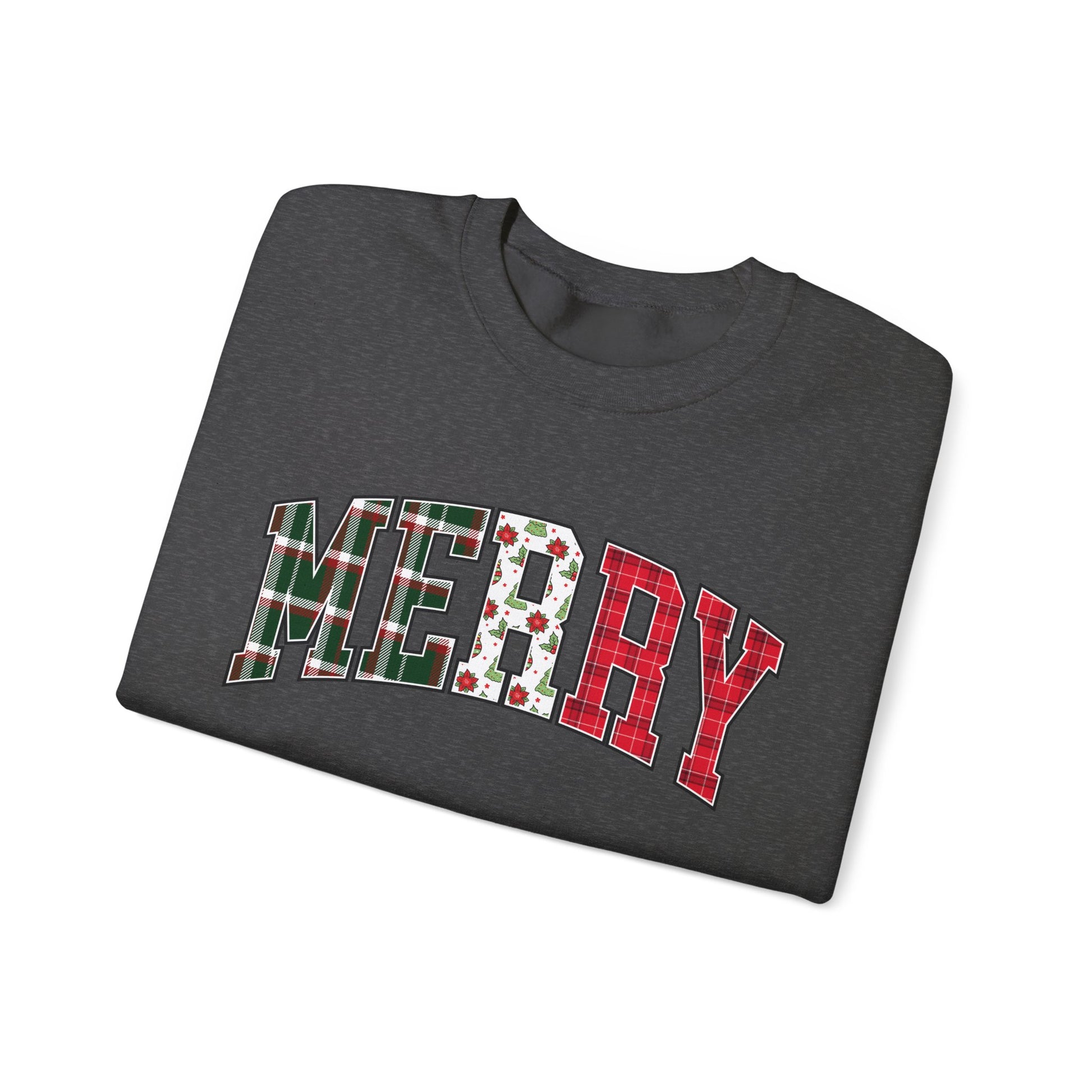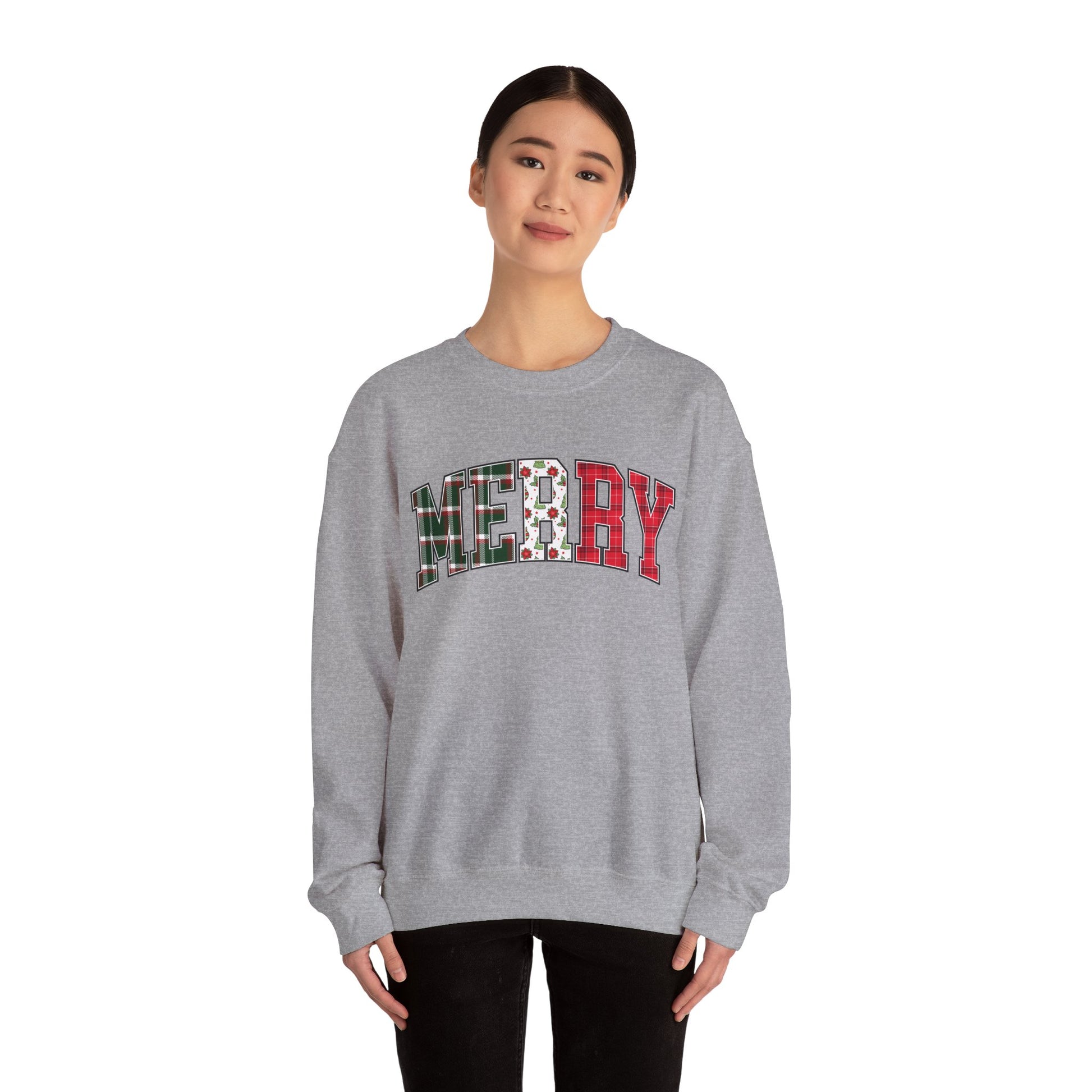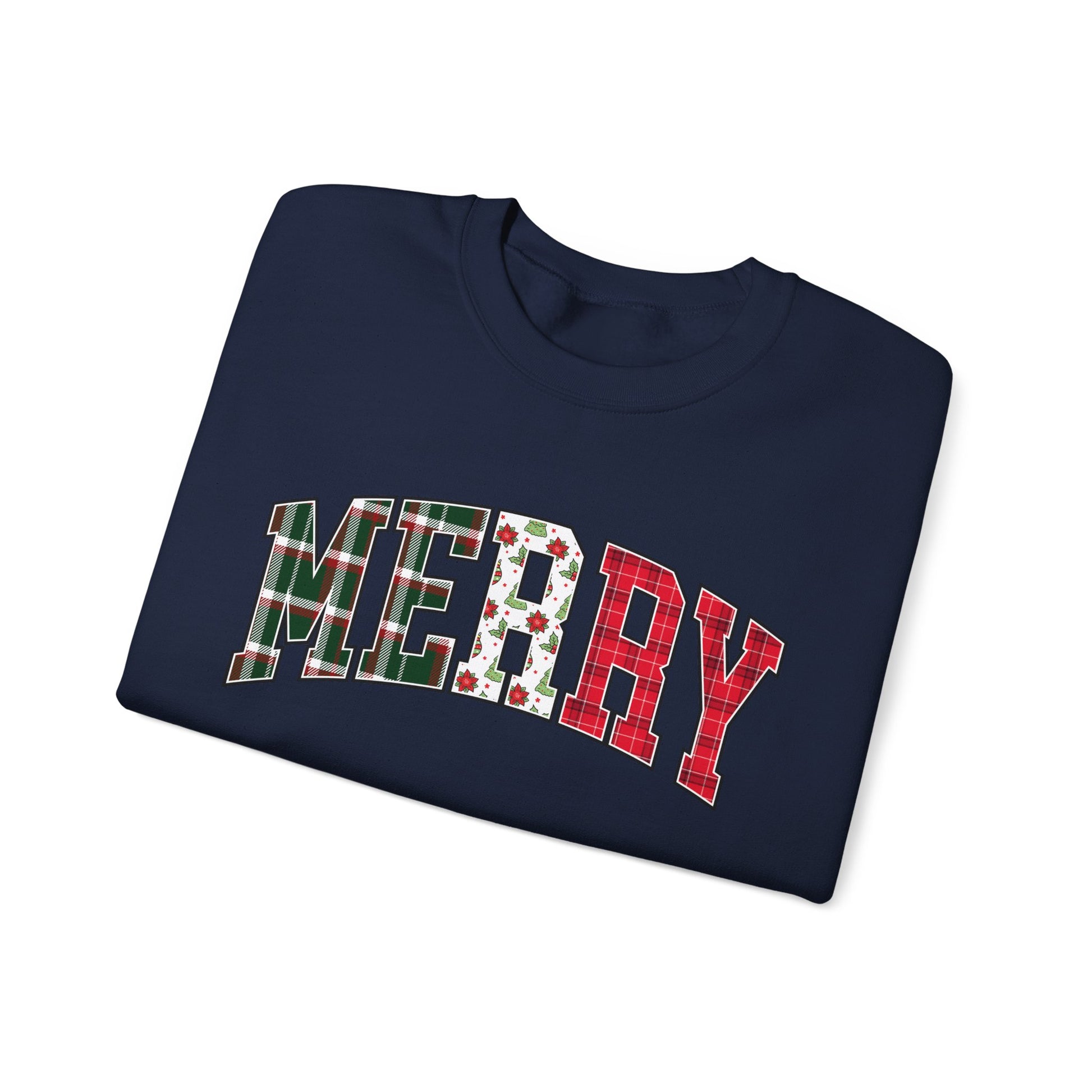 Merry Christmas Sweatshirt | Christmas Family crewneck | Xmas Gift Idea | Cute Winter Holiday Sweater | Patchwork Merry Christmas