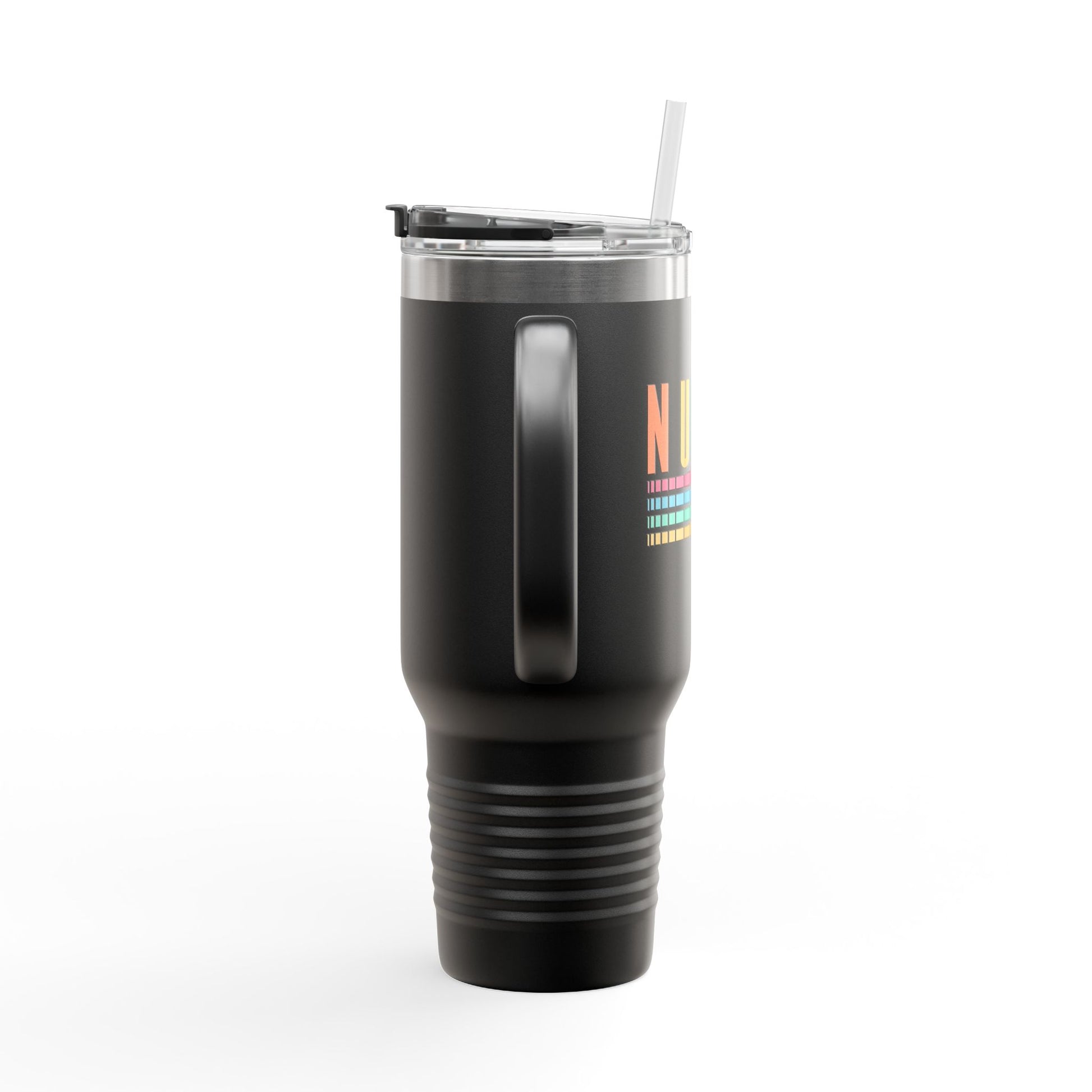 This 40oz insulated travel mug keeps your coffee piping hot or your iced brew perfectly chilled during long drives, early mornings, and weekend adventures. Its durable stainless steel body and double-wall vacuum insulation lock in temperature for hours, while the ergonomic handle and included straw make sipping on the go simple and comfortable. The leak-resistant push-on lid with a secure latch helps prevent spills, and the powder-coated finish adds a tactile, colorful look that resists wear. Lightweight yet sturdy, this tumbler feels at home in cup holders, on workbenches, and beside backpacks — ready for road trips, outdoor workdays, or marathon study sessions.