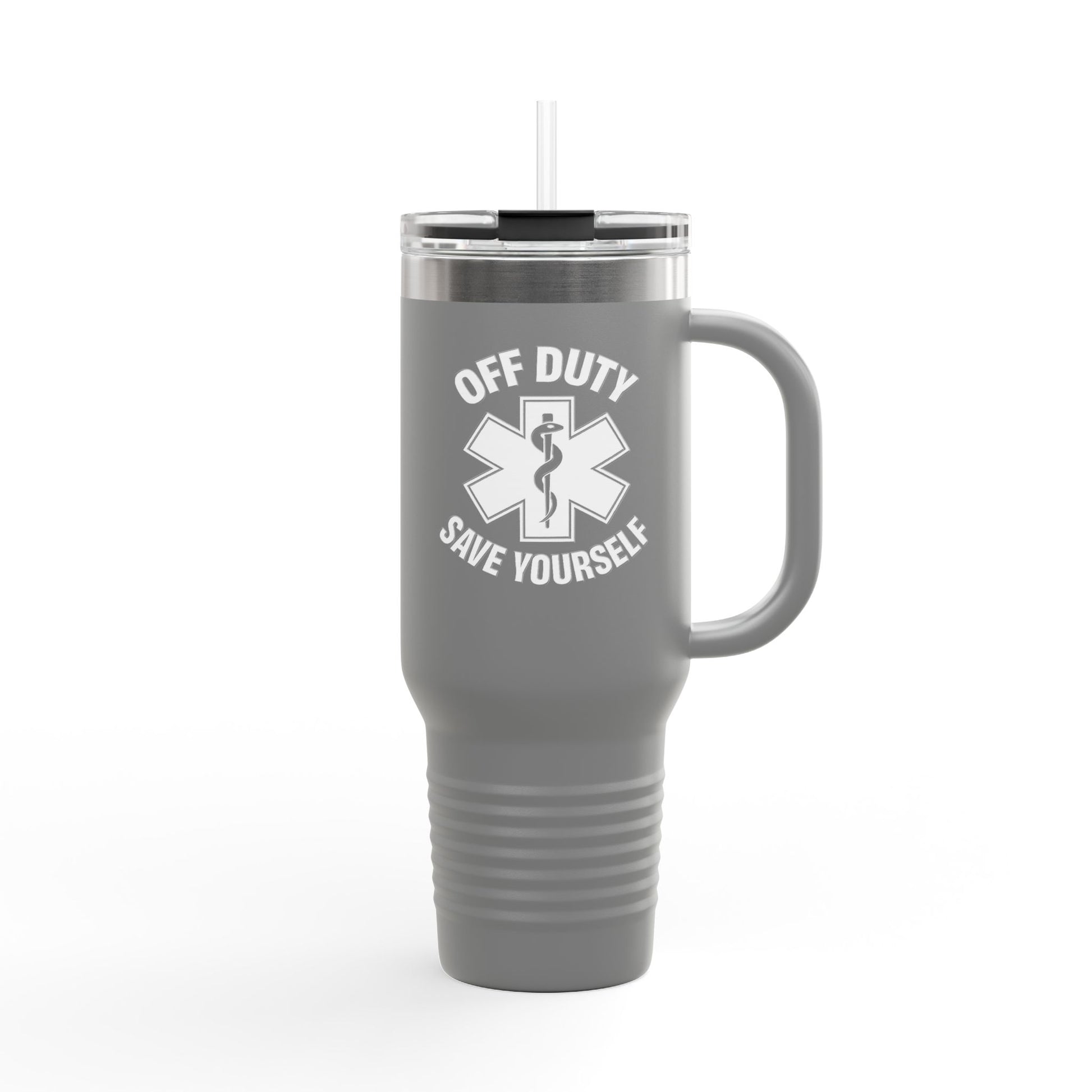 Off Duty Save Yourself Travel Mug | 40oz Insulated Tumbler | Funny Coffee Cup | Work Humor | Gift for Him & Her | Travel Drinkware