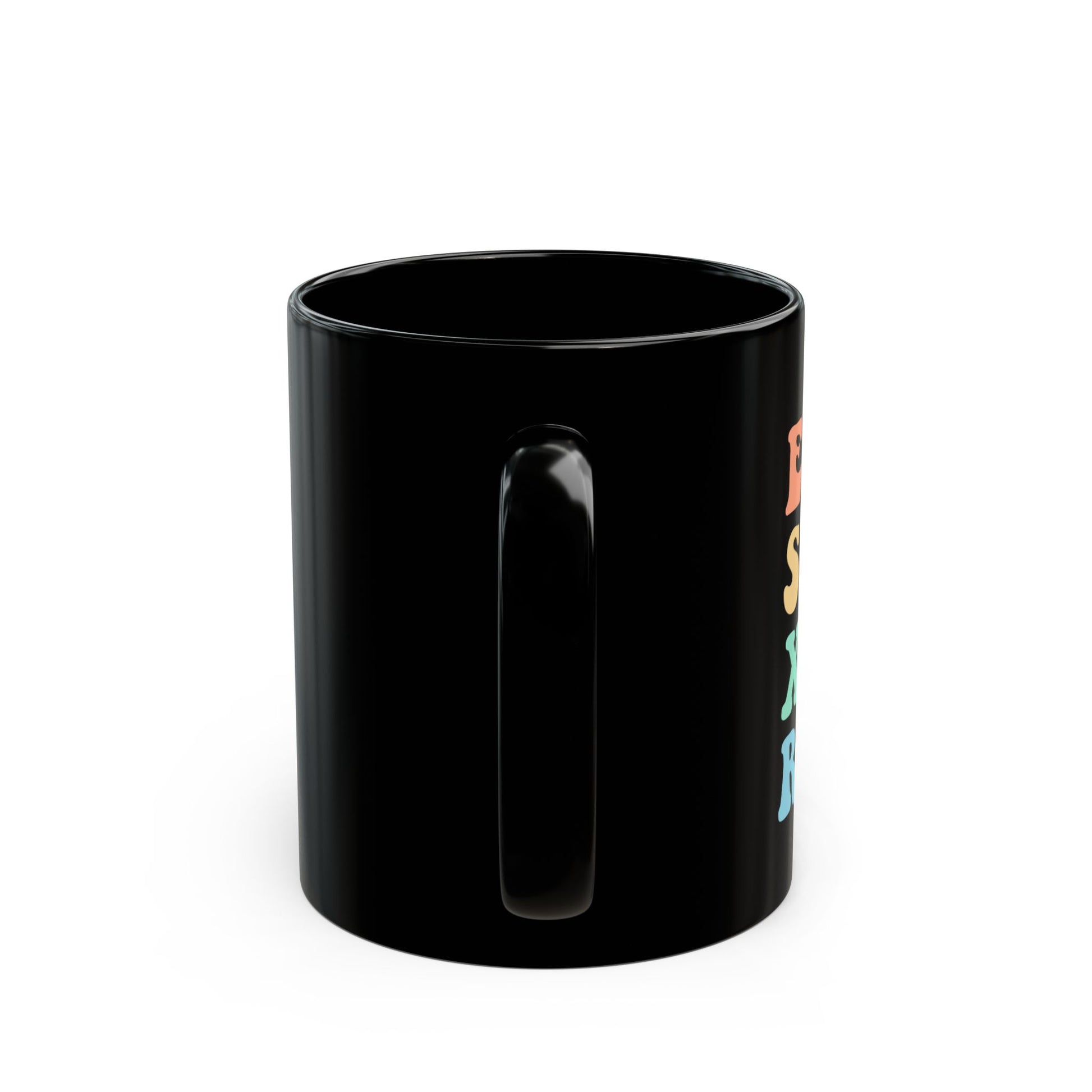 This glossy black ceramic mug brings cozy, colorful vibes to everyday rituals. Smooth black glaze contrasts with the uplifting, retro-inspired lettering so your morning coffee, evening tea, or late-night cocoa feels like a small, joyful ritual. Lightweight but sturdy, its C-shaped handle and balanced weight make it comfortable to hold during slow mornings or busy desk hours. The vibrant print stays crisp through regular use, and the microwave- and dishwasher-safe finish keeps care simple. Let this mug be the quiet companion for reflection, study sessions, or casual catch-ups that turn ordinary moments into something warmer.